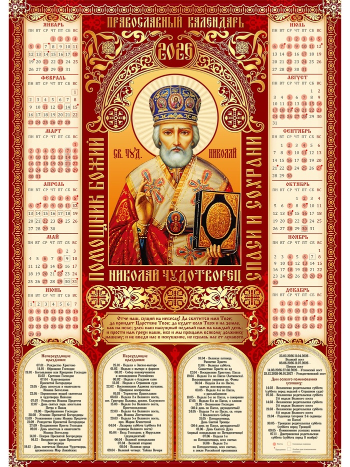 Календарь 2026 православный «Николай Чудотворец», А2 — Характеристики