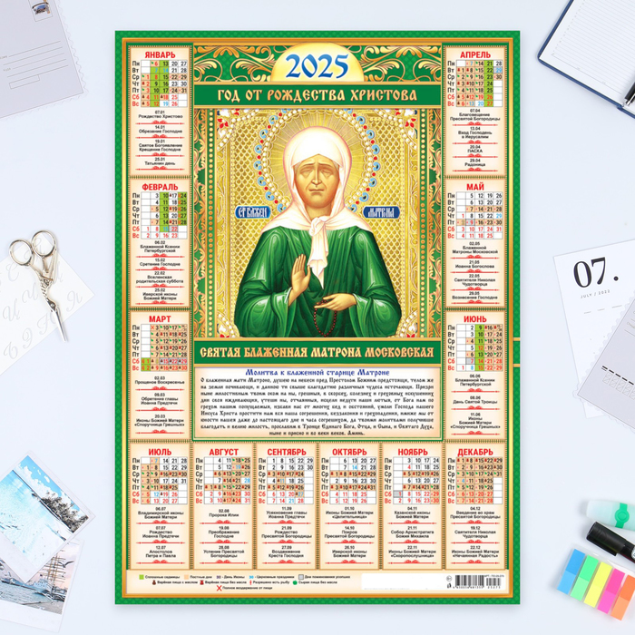Календарь листовой А2 «Матрона Московская» 2025 год, 42×60 см