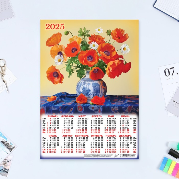 Календарь настенный 2025 год, листовой А3 «Цветы» 30×42 см