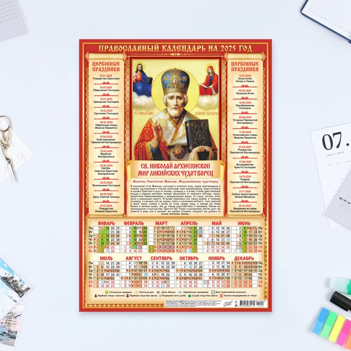 Календарь листовой «Николай Чудотворец», 2025 год, 30×42 см