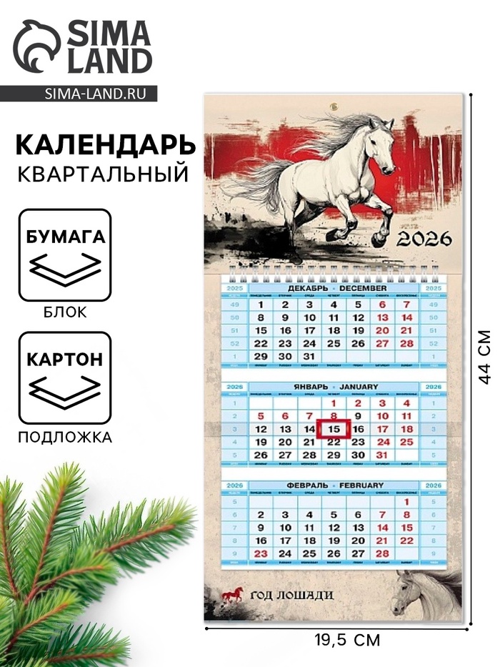 Календарь 2026 трио мини на пружине «Конь с цветами» — Характеристики