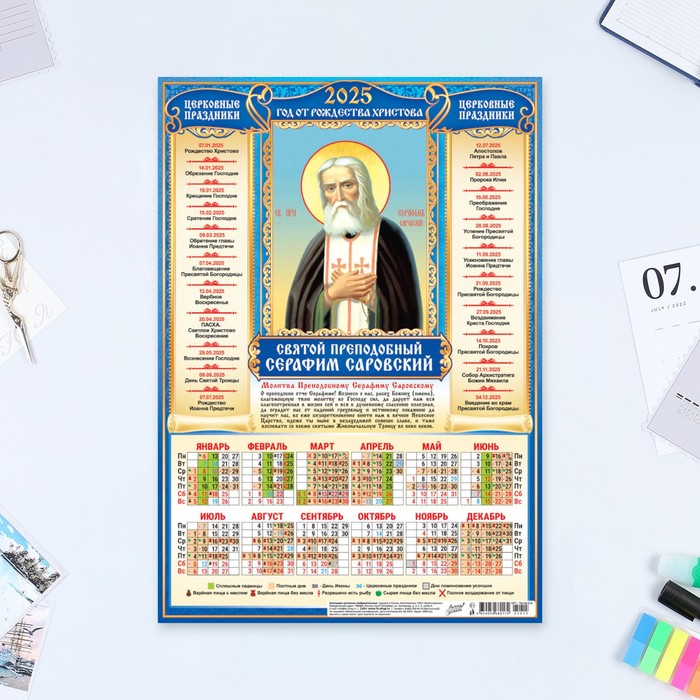 Календарь листовой А3 «Серафим Саровский» 2025 год, 30×42 см