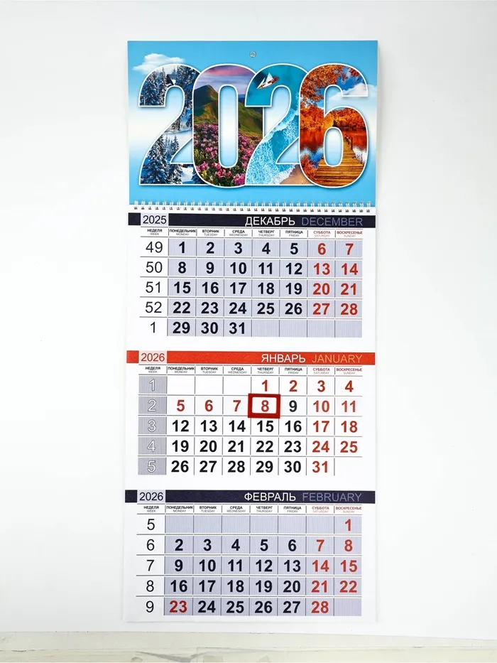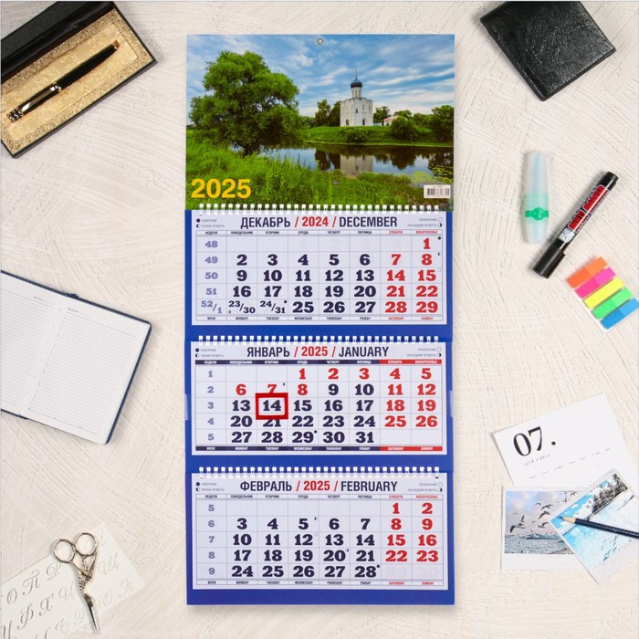 Календарь квартальный, трио «Церковь» 2025, 69×31 см