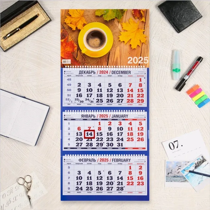 Календарь квартальный, трио «Осенняя кружка кофе» 2025, 69×31 см — Характеристики
