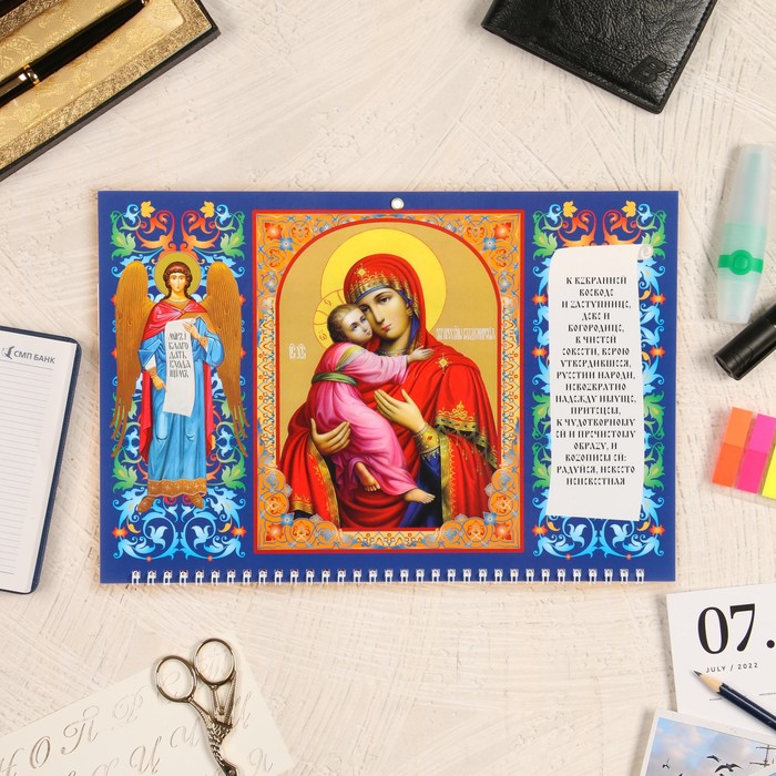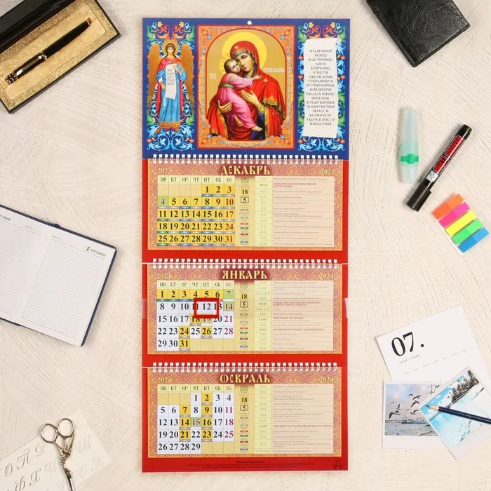Календарь квартальный, трио «Владимирская Богоматерь» 2024 год, сетка с постами, 31×68 см — Характеристики