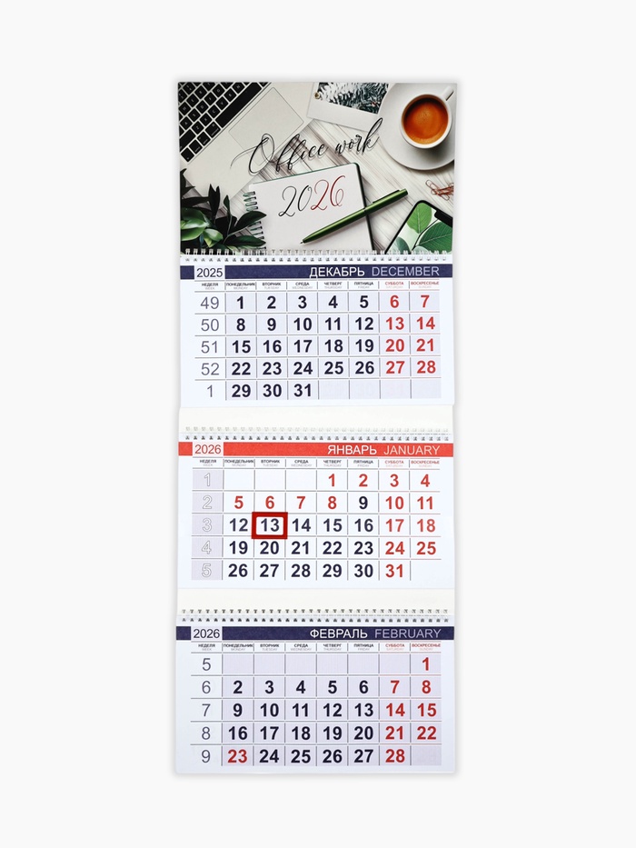 Календарь квартальный, трио «Осенняя кружка кофе» 2025, 69×31 см