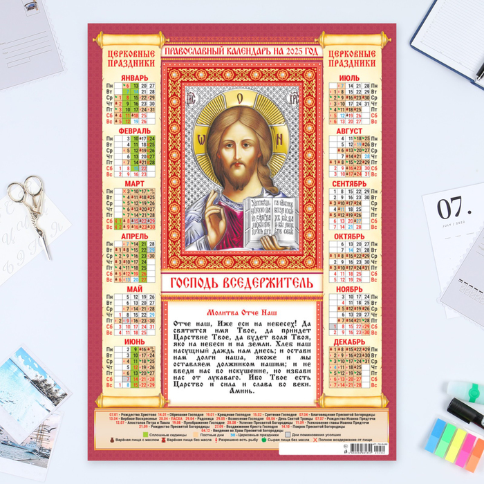 Календарь настенный 2025 год, листовой А4 «Православный» 21×30 см