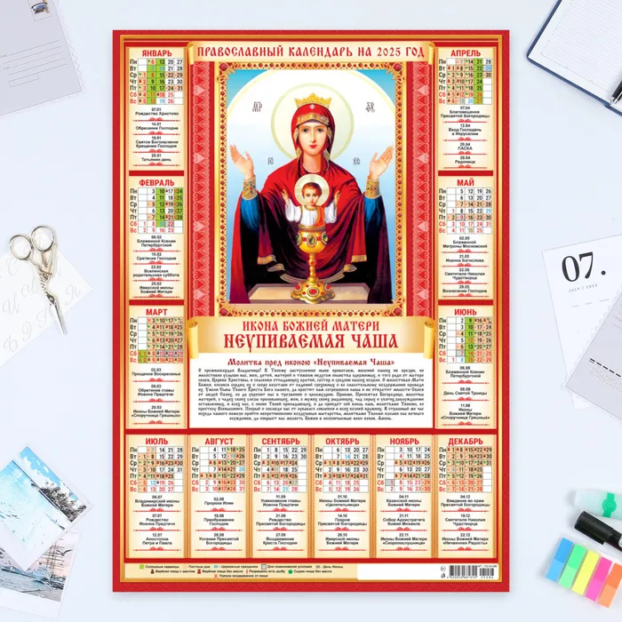 Календарь листовой А2 «Неупиваемая чаша» 2025 год, 42×60 см