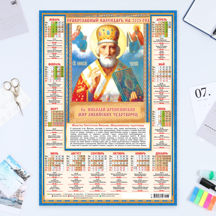 Календарь листовой А2 «Николай Чудотворец» на синем, 2025 год, 42×60 см — Характеристики