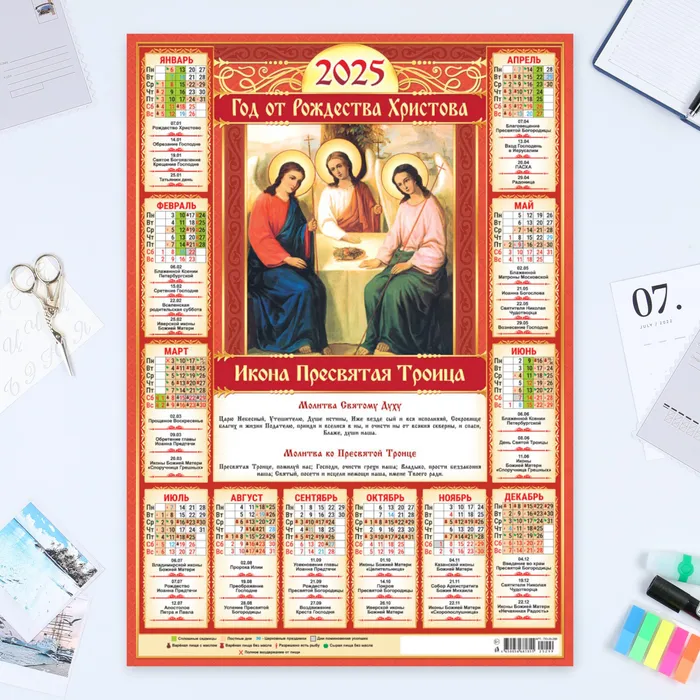 Календарь листовой А2 «Троица» на красном, 2025 год, 42×60 см — Характеристики