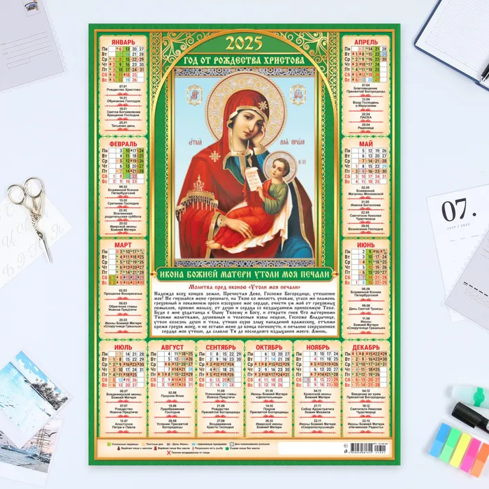 Календарь листовой А2 «Утоли Мои Печали» 2025 год, 42×60 см — Характеристики