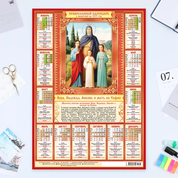 Календарь листовой А2 «Вера, Надежа, Любовь» 2025 год, 42×60 см — Характеристики
