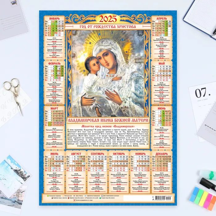 Календарь листовой А2 «Владимирская икона Божией Матери» 2025 год, 42×60 см — Характеристики