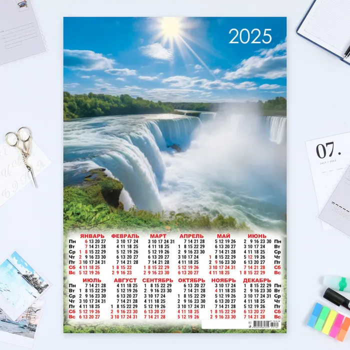 Календарь листовой А2 «Водопад» 2025 год, 42×60 см — Характеристики