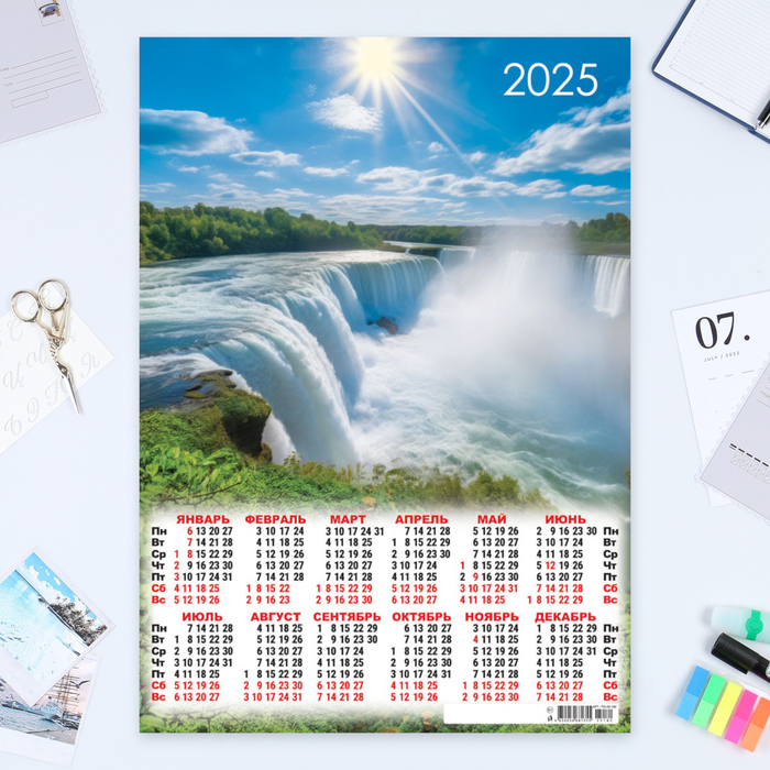 Календарь листовой А2 «Водопад» 2025 год, 42×60 см