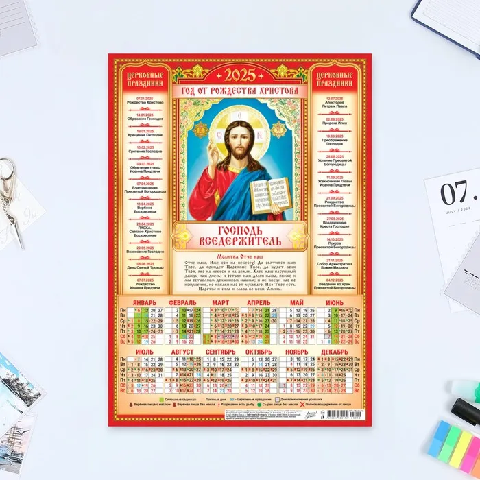 Календарь листовой А3 «Господь Вседержитель» 2025 год, 30×42 см — Характеристики