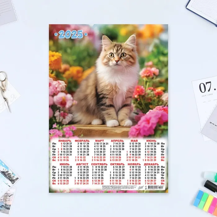 Календарь листовой А3 «Кошка» 2025 год, 30×42 см