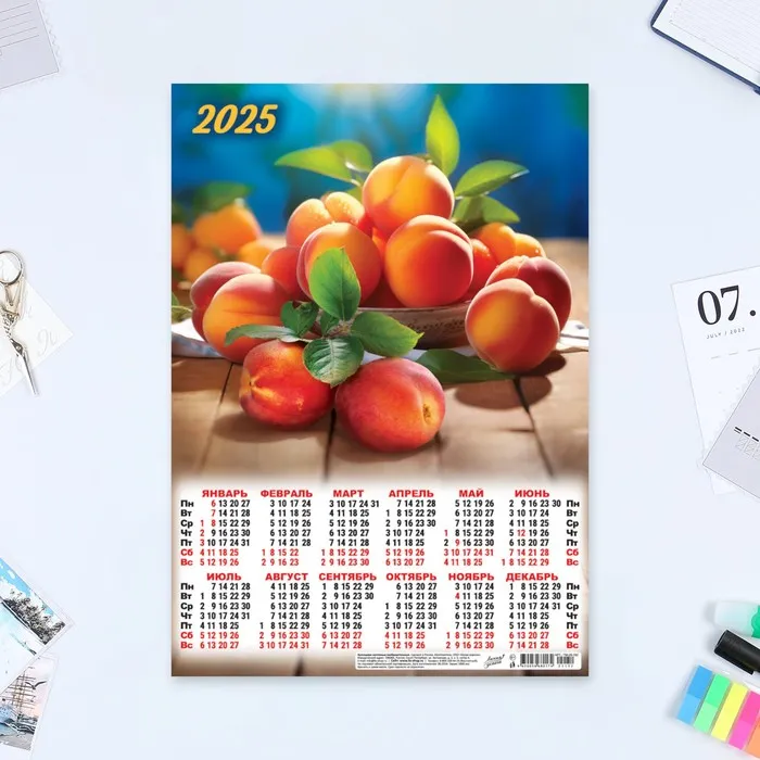 Календарь листовой А3 «Натюрморт: персики» 2025 год, 30×42 см — Характеристики