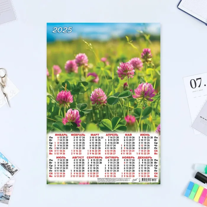 Календарь листовой А3 «Цветы» 2025 год, 30×42 см — Характеристики