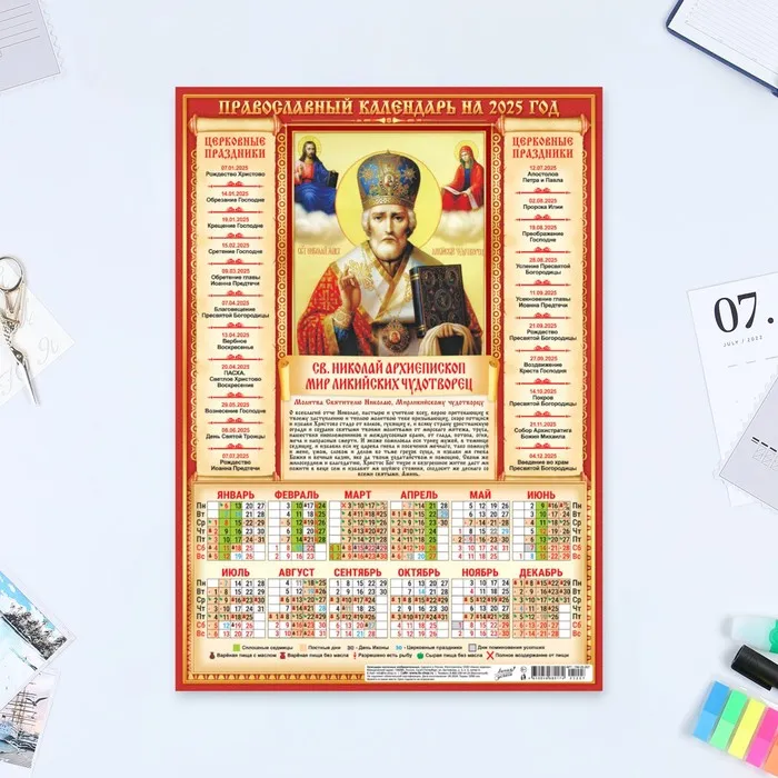 Календарь листовой «Николай Чудотворец», 2025 год, 30×42 см — Характеристики