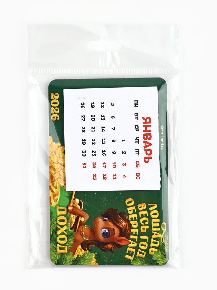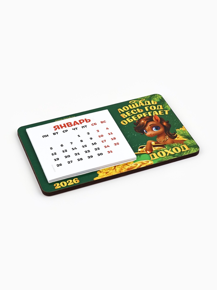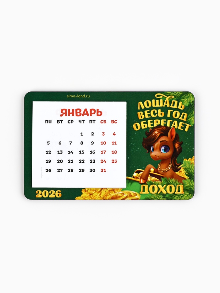 Календарь на магните 2026 с блоком «Лошадка оберегает доход»