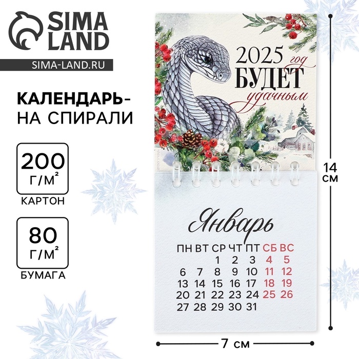 Календарь 2025 новогодний на спирали «Новый год: Удачи», 7 х 7 см