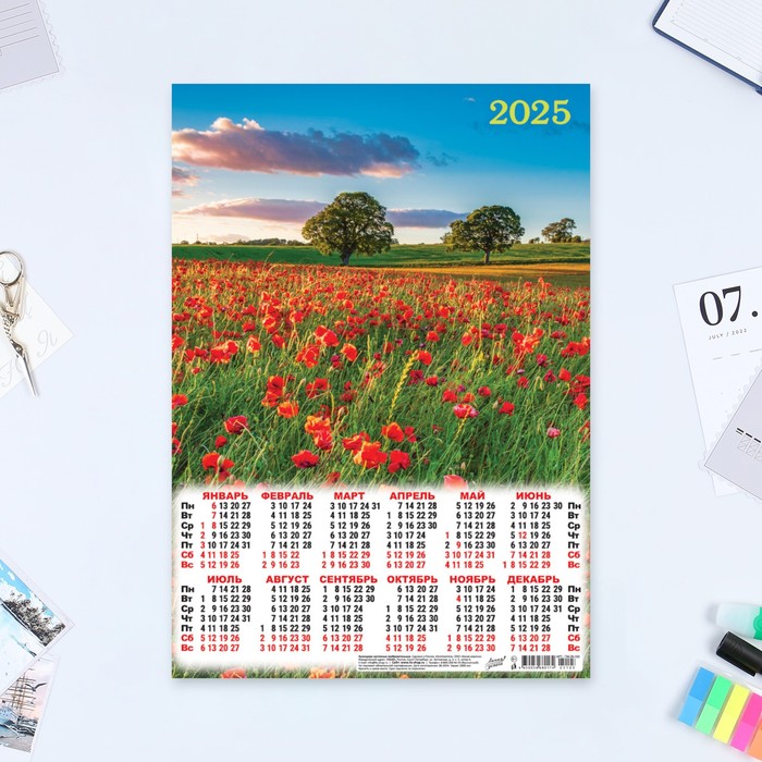 Календарь листовой А3 «Поле» 2025 год, 30×42 см