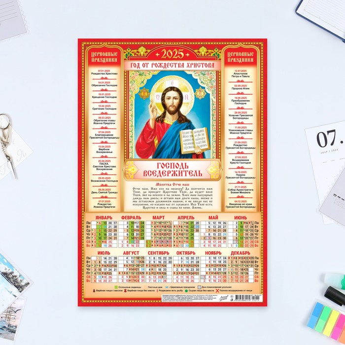 Календарь листовой А3 «Господь Вседержитель» 2025 год, 30×42 см