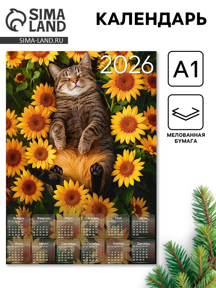 Календарь настенный 2026 «Кот с подсолнухами», А1