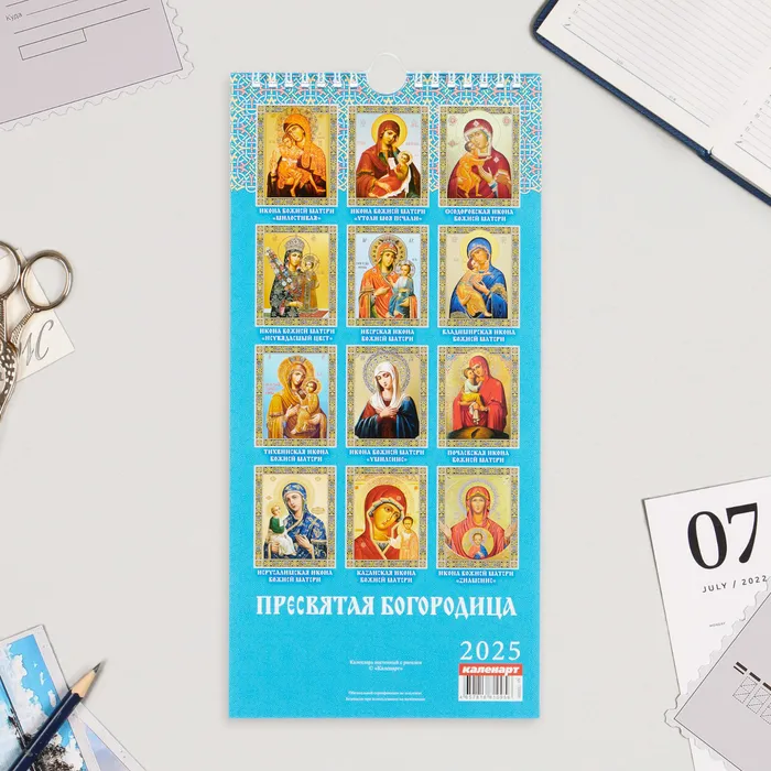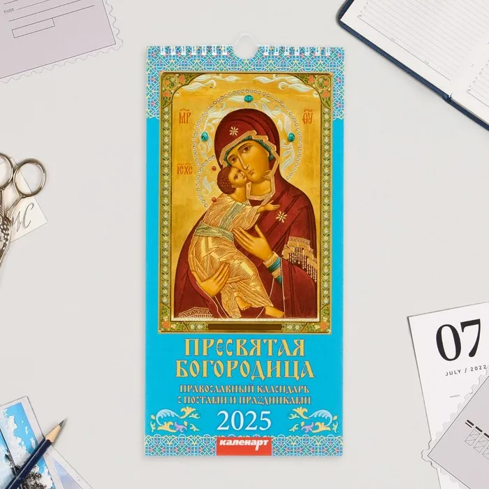 Календарь перекидной на ригеле А3 «Пресвятая Богородица» 2025, 32×48 см