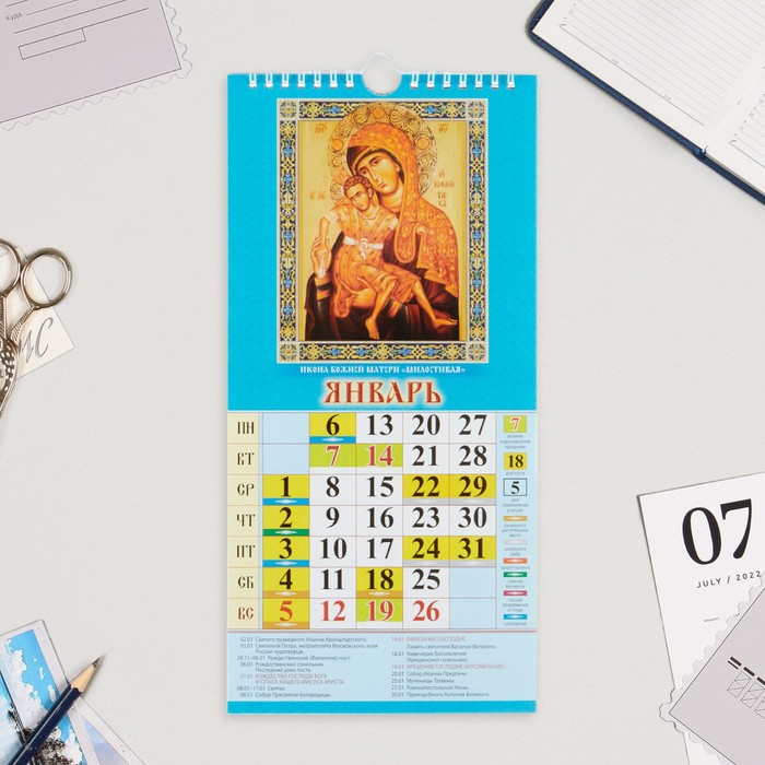 Календарь на ригеле «Пресвятая Богородица» 2025 год, 16.5×34 см