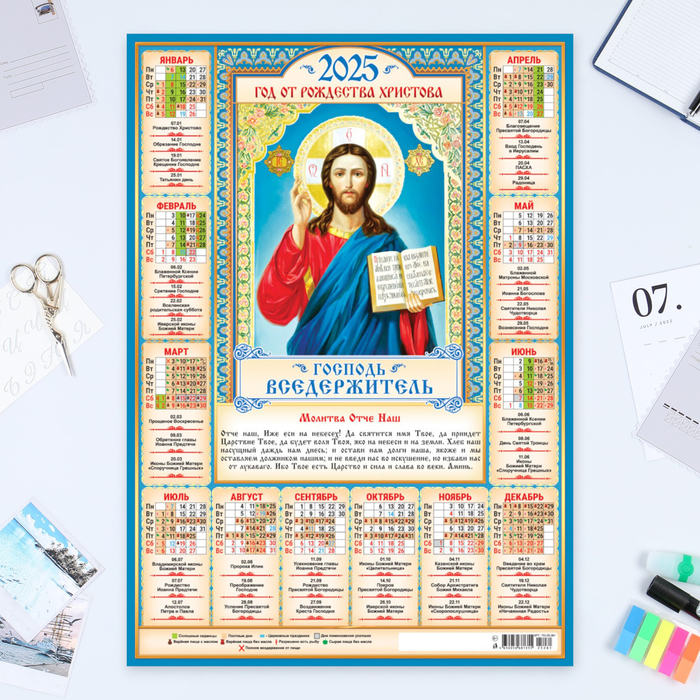 Календарь листовой А2 «Господь Вседержитель» на синем, 2025 год, 42×60 см