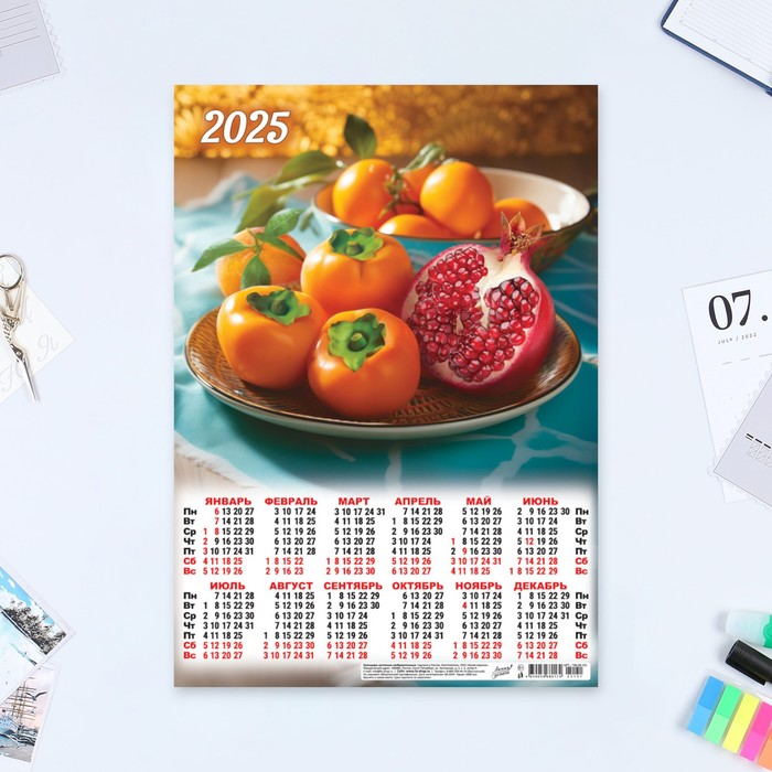 Календарь листовой А3 «Натюрморт: хурма и гранат» 2025 год, 30×42 см