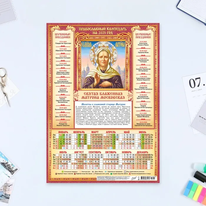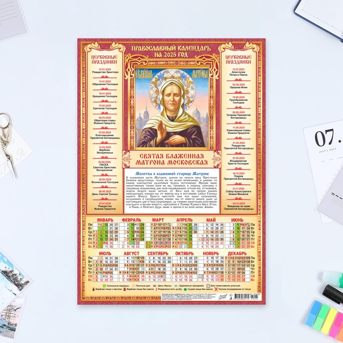Календарь настенный 2025 год, листовой А3 «Матрона Московская» 30×42 см — Характеристики