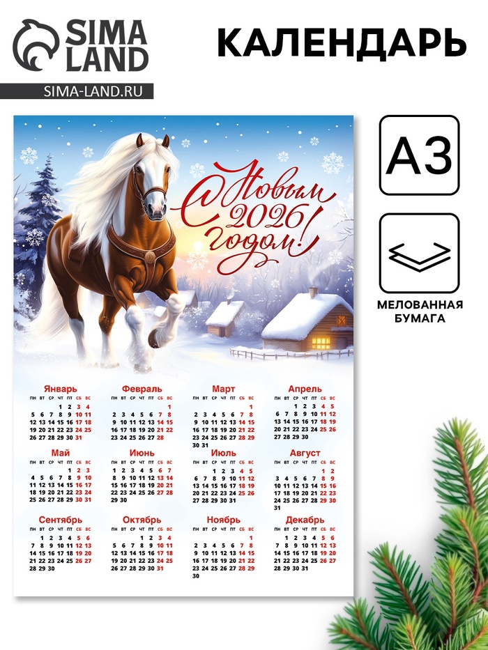 Календарь настенный 2026 «С новым годом!», А3 — Характеристики