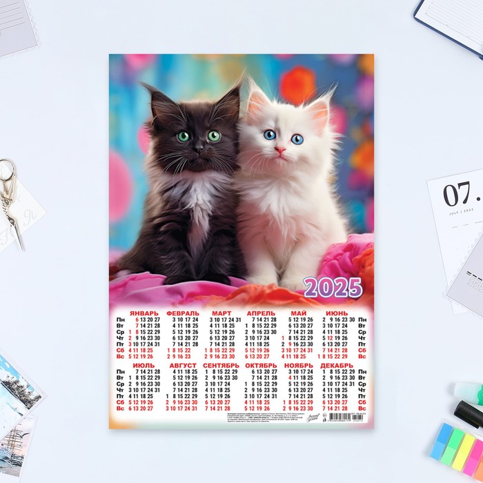 Календарь настенный 2025 год, листовой А3 «Кошки» 30×42 см