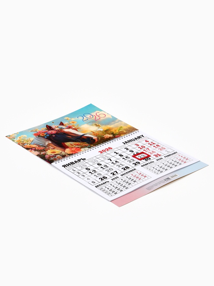 Календарь настенный квартальный 2026 «Лошадь с цветами», 30×46 см — Характеристики