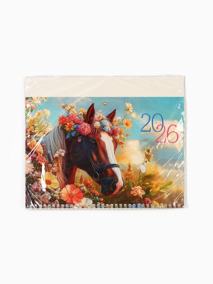 Календарь настенный квартальный 2026 «Лошадь с цветами», 30×46 см