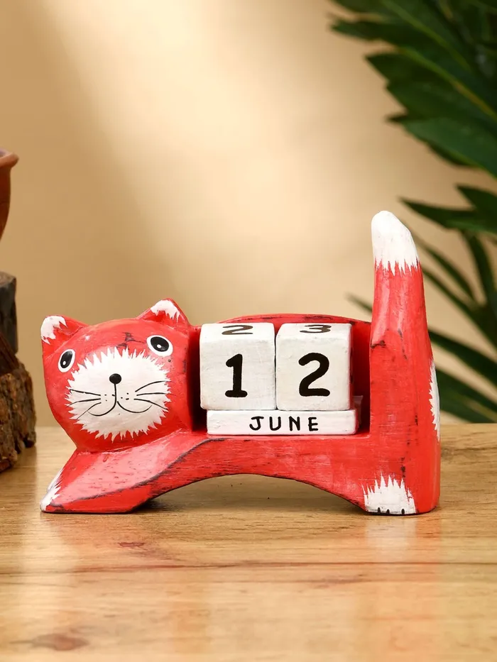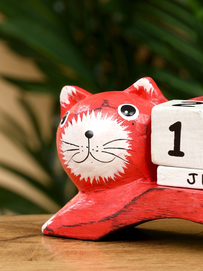 Календарь настольный «Кошка», 13×4×10 см, дерево, красный — Характеристики