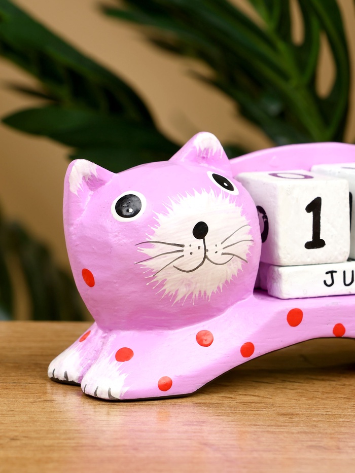 Вечный календарь «Кошка», 13×4×6.5 см, дерево