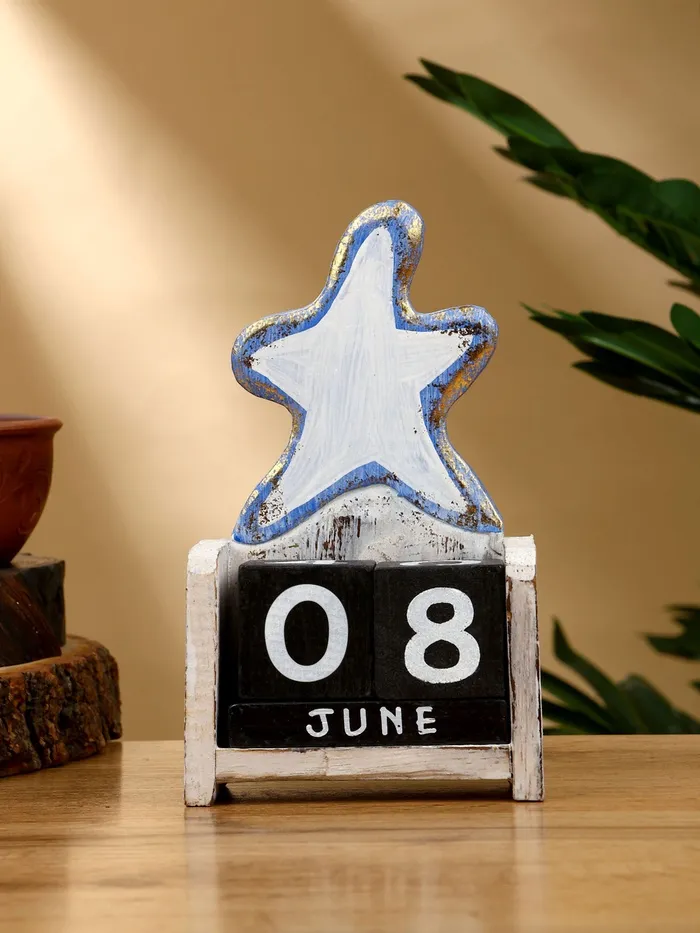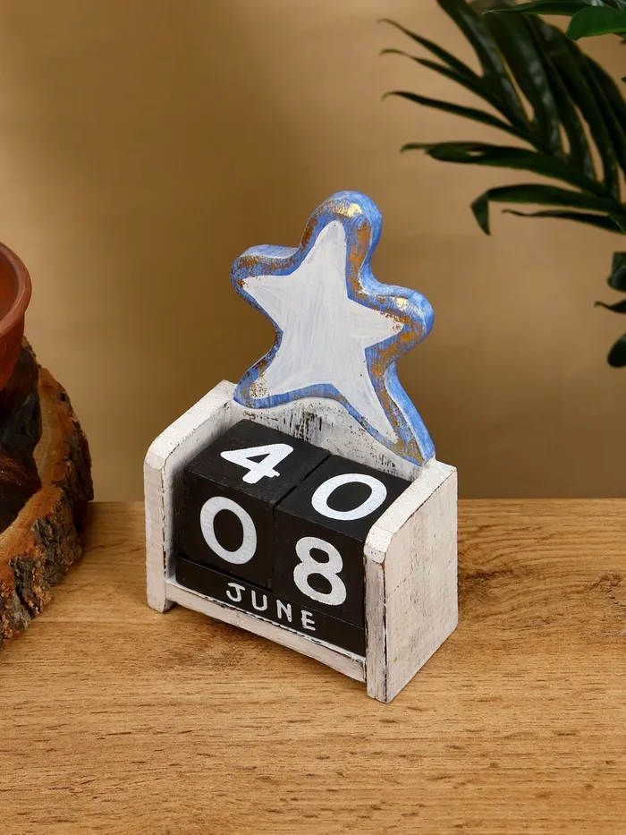 Календарь настольный «Морская звезда», 10.5×5.5×18 см, дерево, золотисто-синий