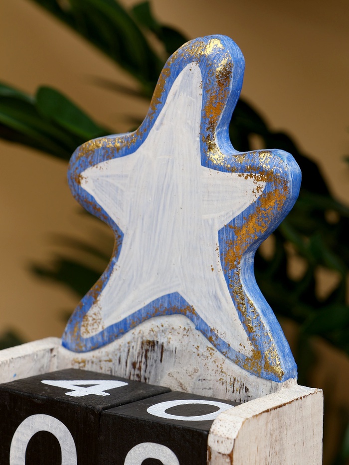 Календарь настольный «Морская звезда», 10.5×5.5×18 см, дерево, золотисто-синий — Характеристики