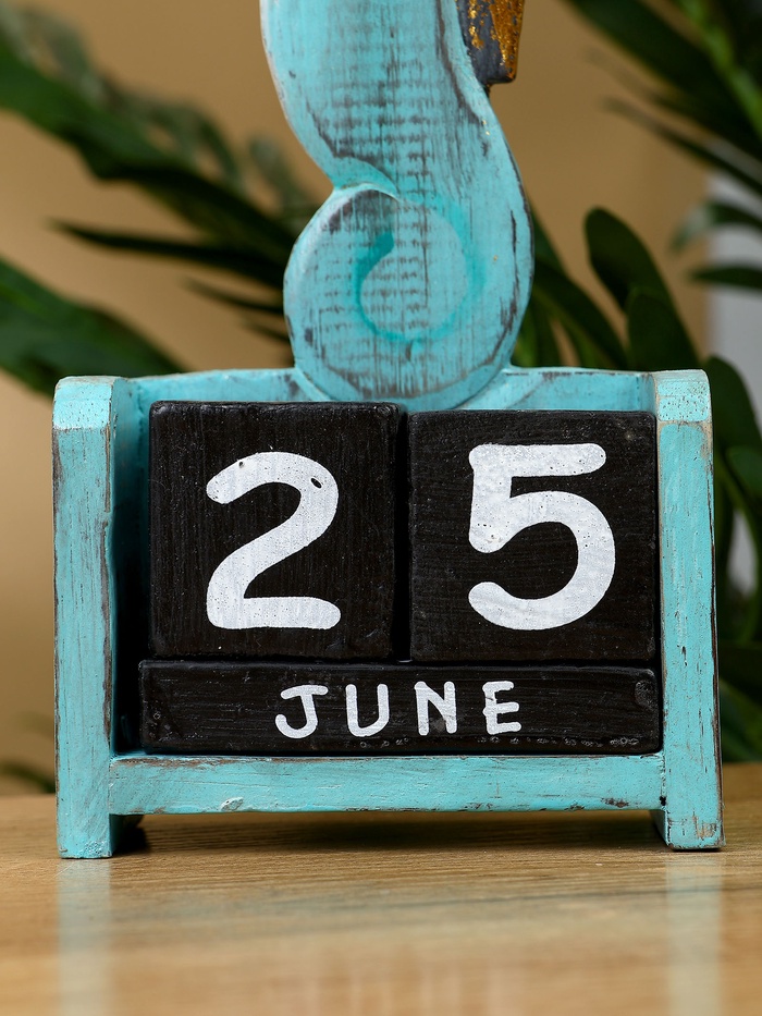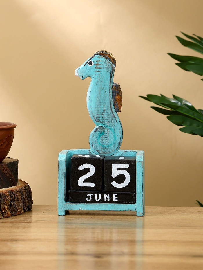 Календарь настольный "Морской конёк" дерево 11х5х19 см, цв. бирюзовый