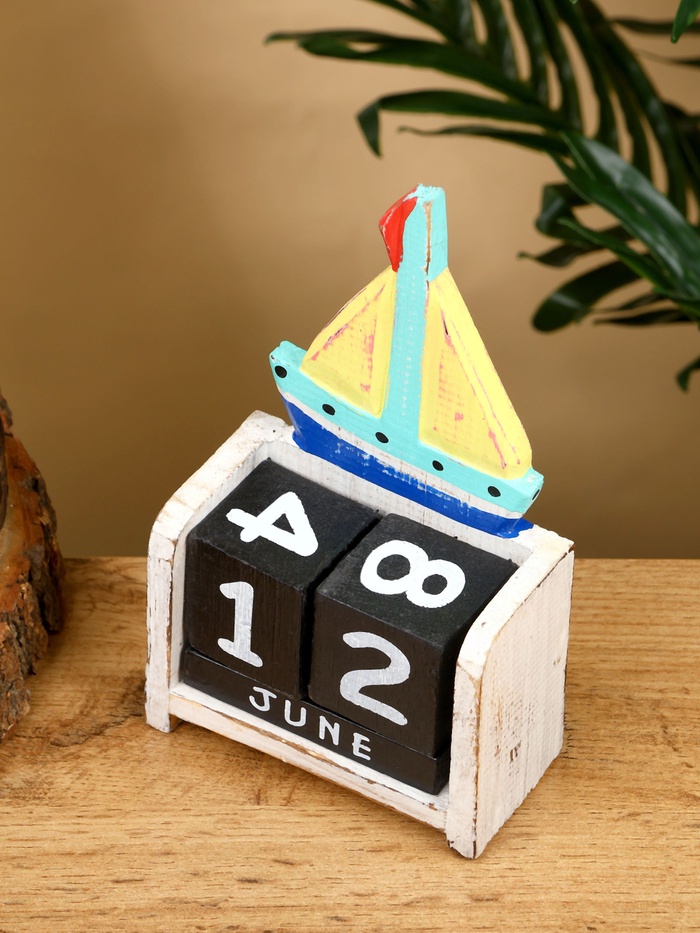Календарь настольный "Парусник" дерево 11х5х16 см, цв. жёлтый