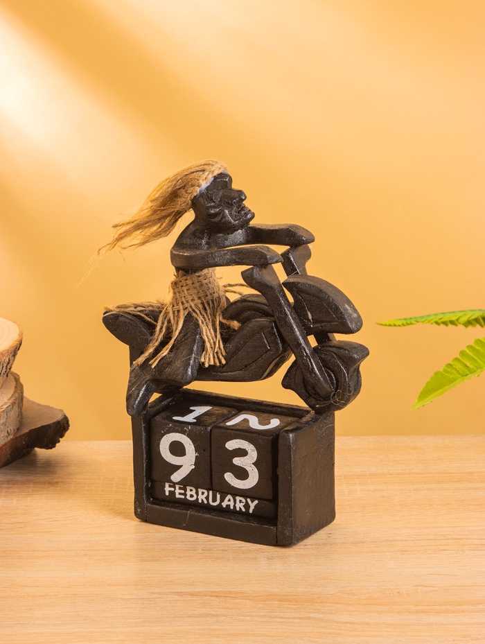 Вечный календарь «Абориген на мотоцикле», 20×16×9 см, дерево