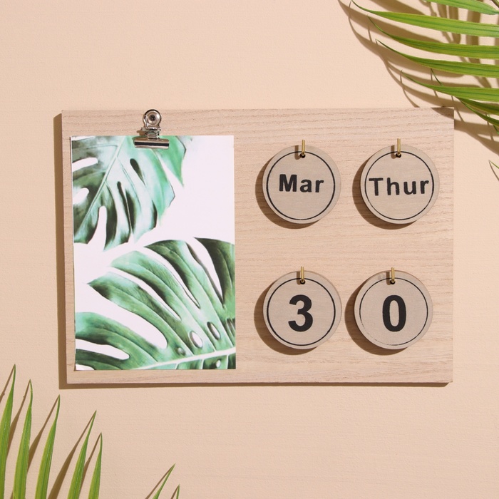 Сувенир вечный календарь с прищепкой, 23.5×23.5×17 см, дерево