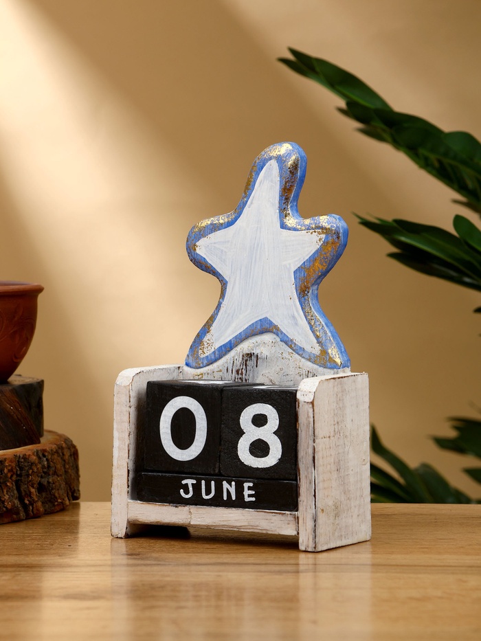 Календарь настольный «Морская звезда», 10.5×5.5×18 см, дерево, золотисто-синий