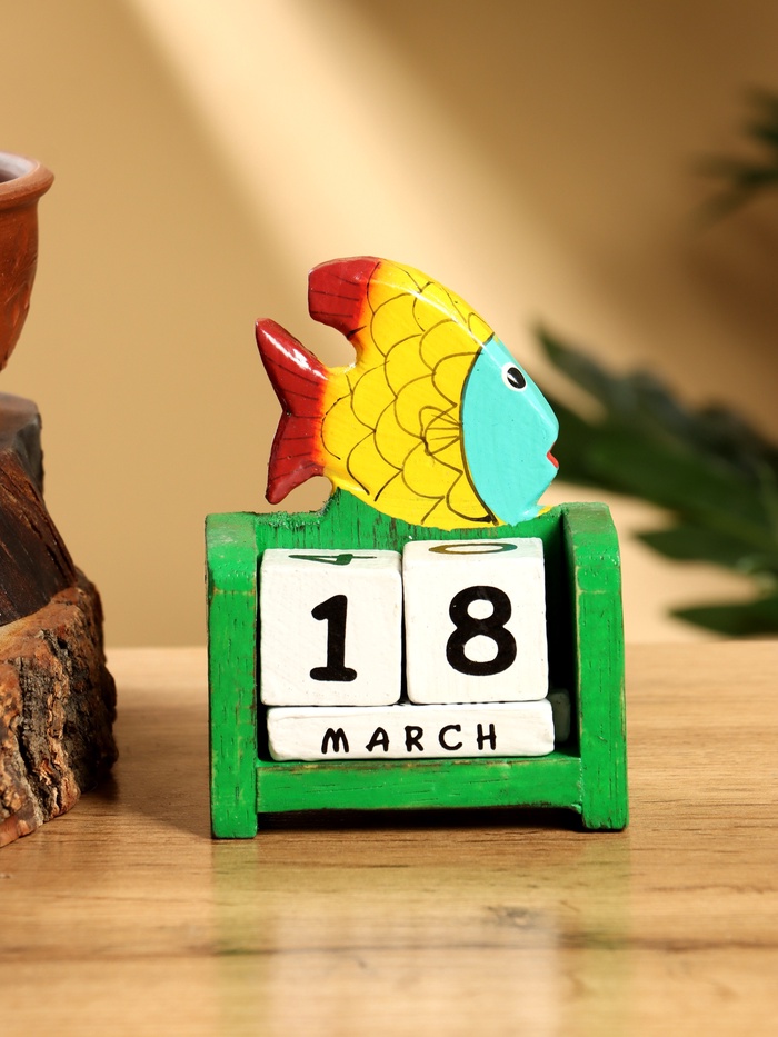 Календарь настольный «Рыбка», 7×4×9 см, дерево, зелёный — Характеристики