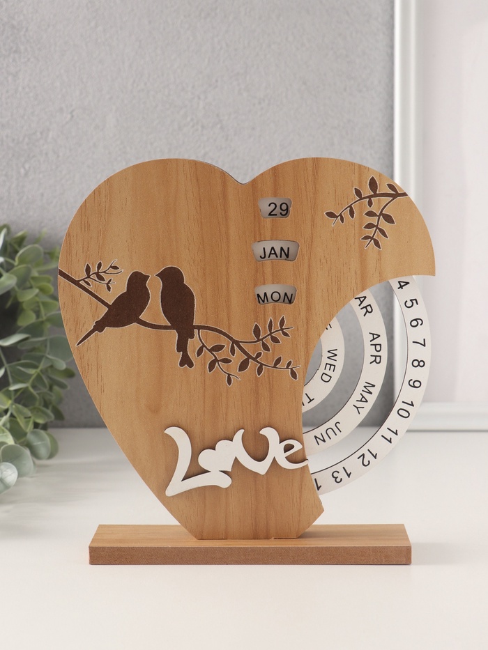 Настольный календарь-вечный «Две птички на сердце», дерево, 3.7×18×19.5 см