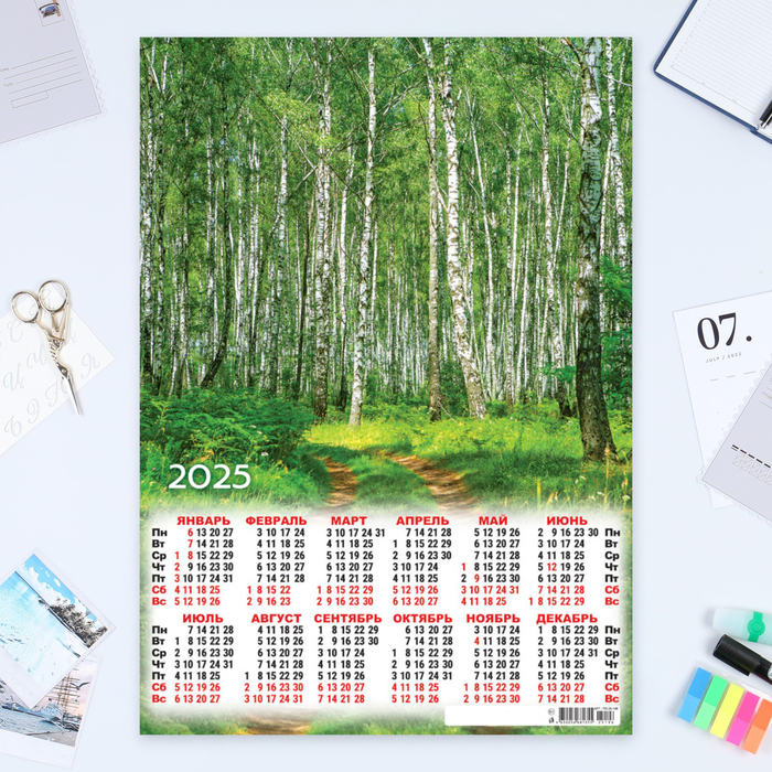 Календарь листовой А2 «Лес» 2025 год, 42×60 см